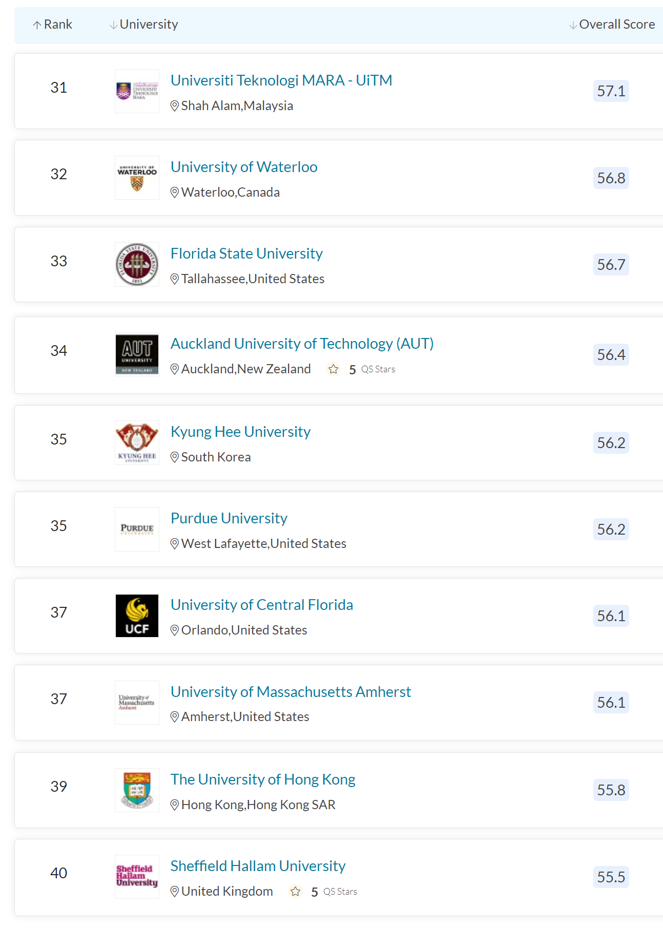하지만 저는 저의 모교인 Taylor's University를 제일 높은 순위에 매겨놓은 QS랭킹을 매년 확인하고 있습니다.