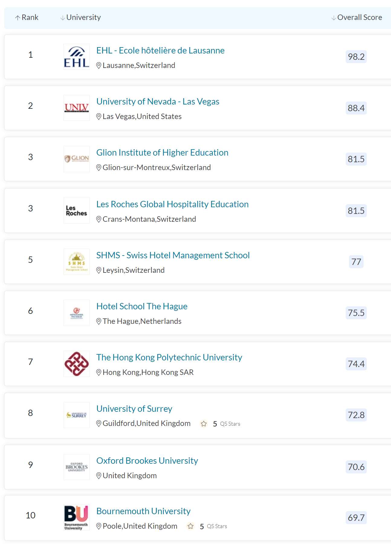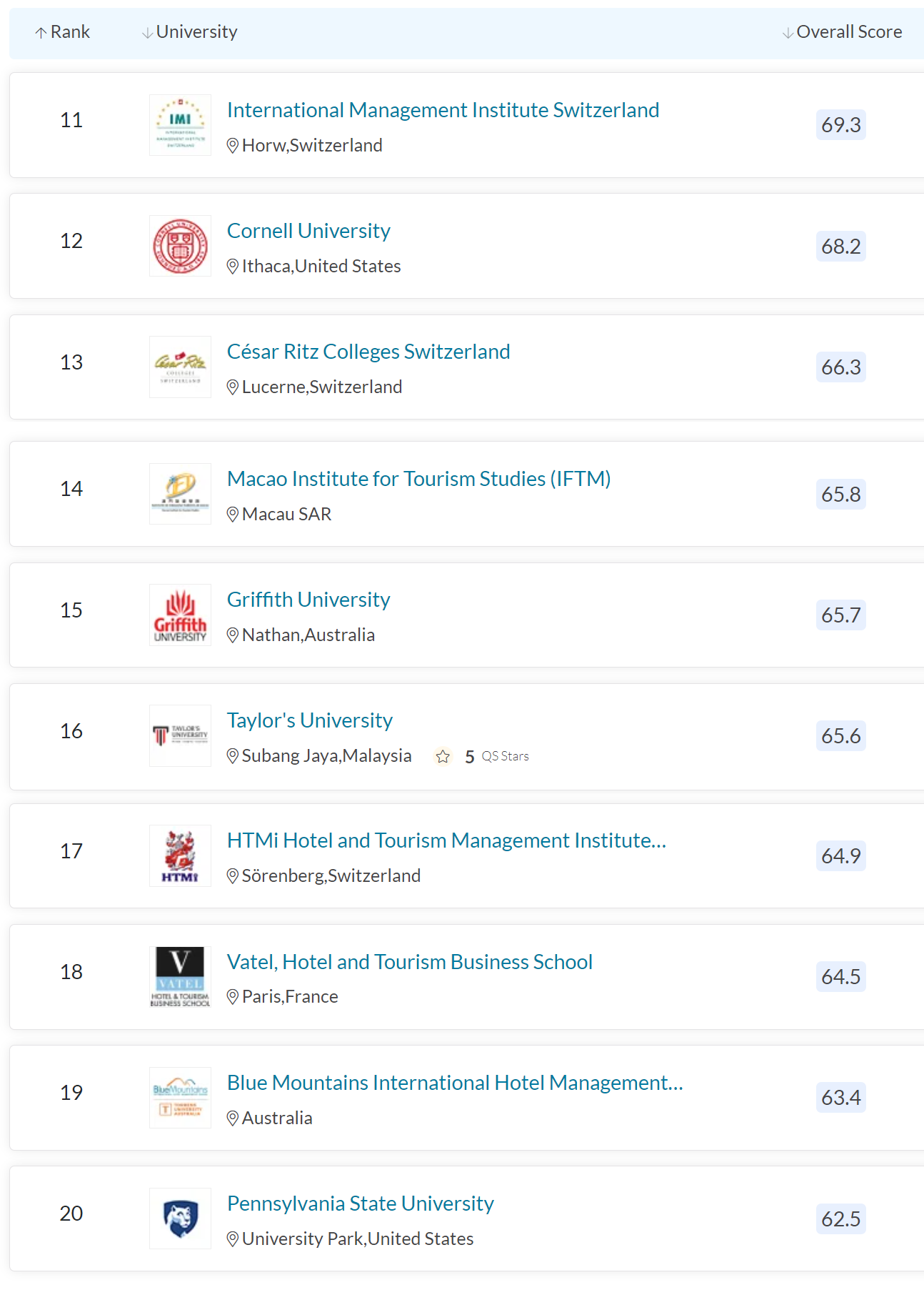 2017/11/24 - [해외생활/유학] - 2017년도 호텔,관광 경영학과 대학교 순위