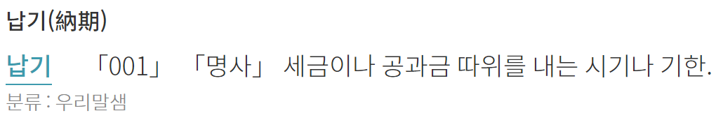 세금이나 공과금 따위를 내는 시기나 기한 즉, 납기는 보험료를 납부하는 시기입니다.