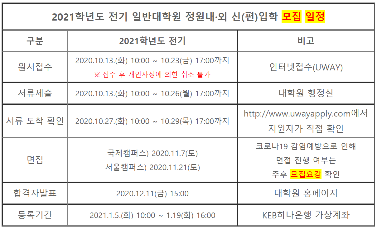 경희대학교 대학원의 경우 세종대보다 조금 더 많은 서류를 요구하고 있습니다.