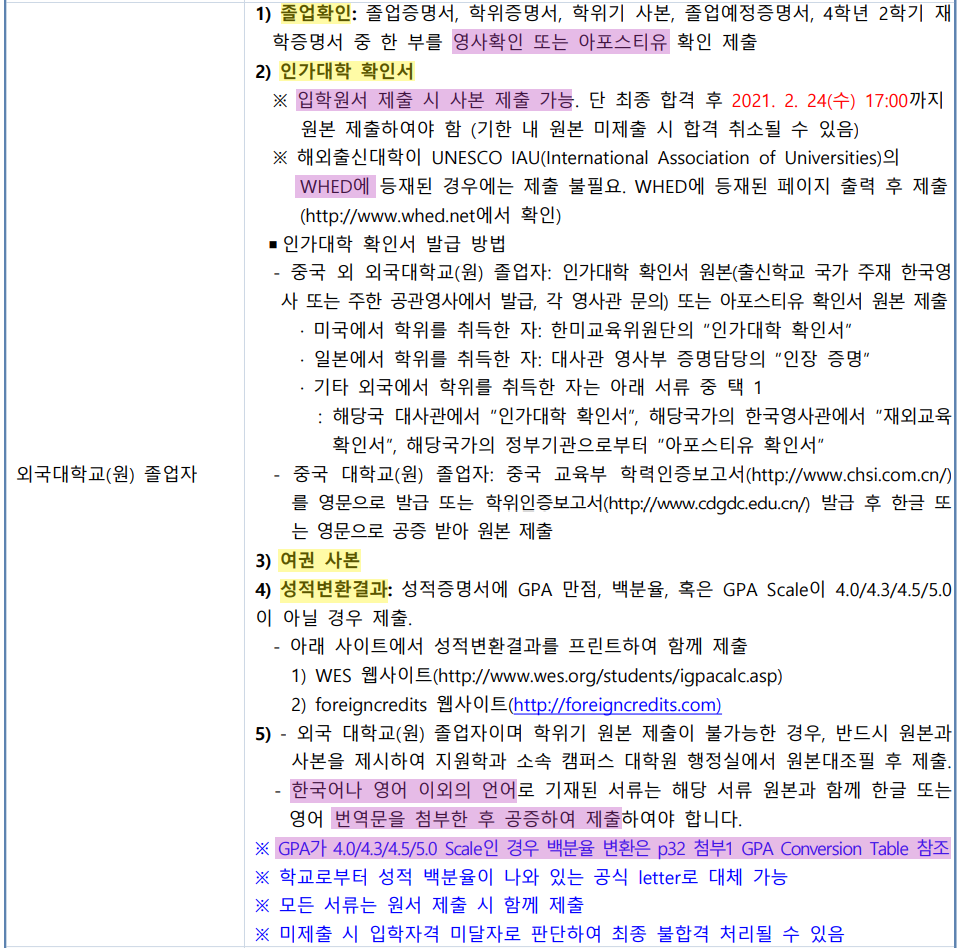 원서야 그냥 넣으면 될대로 되겠지 하면서 별 준비 없이 있었는데, 해외 대학교를 졸업한 사람들은 생각보다 준비할 서류가 많더군요.
