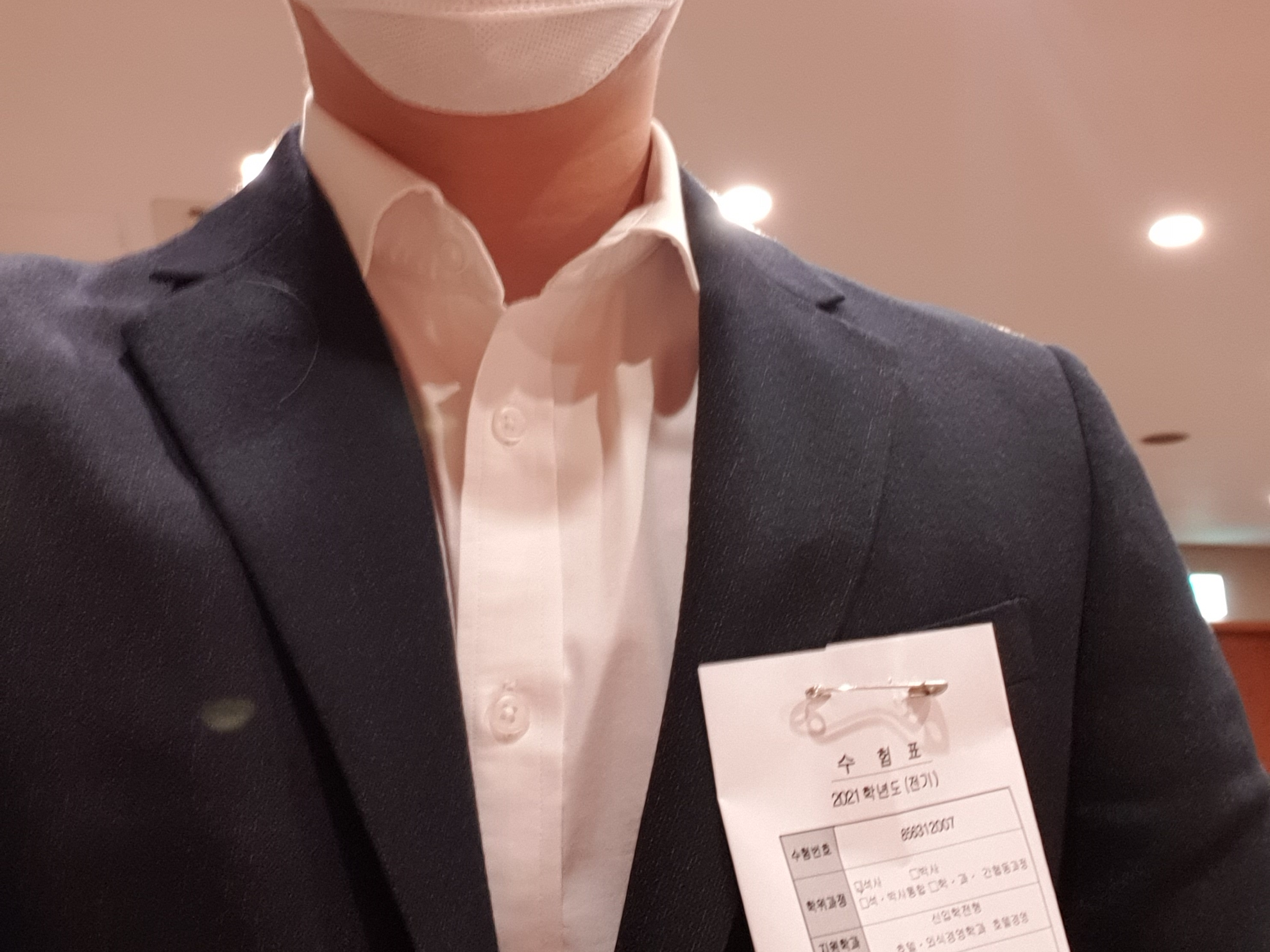 추가적으로 수험표를 가져가서 옷에 부착해야 하는데, 면접장에는 테이프만 비치돼 있습니다.