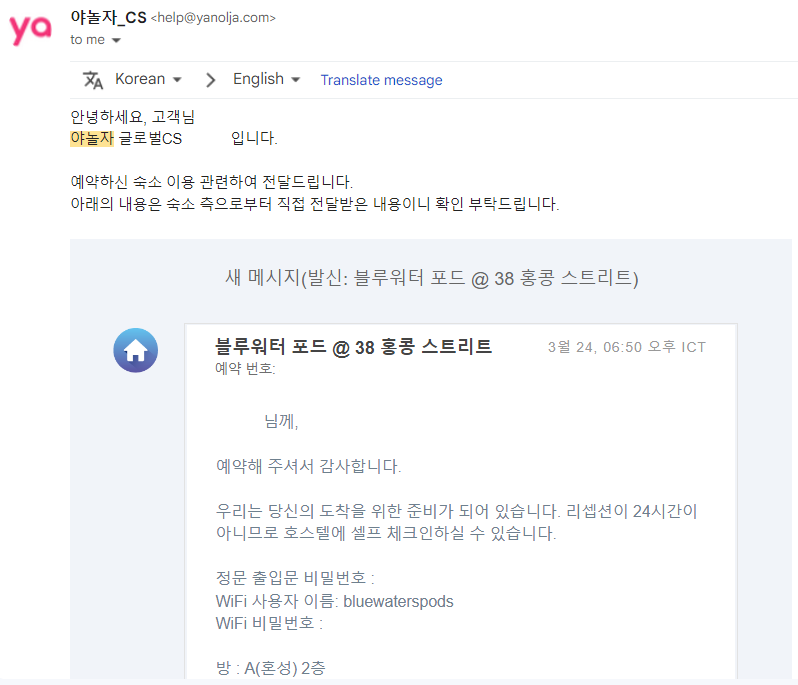저의 경우, 숙박 당일 야놀자로부터 메일을 받아 외부 비밀번호를 알아낼 수 있었습니다.