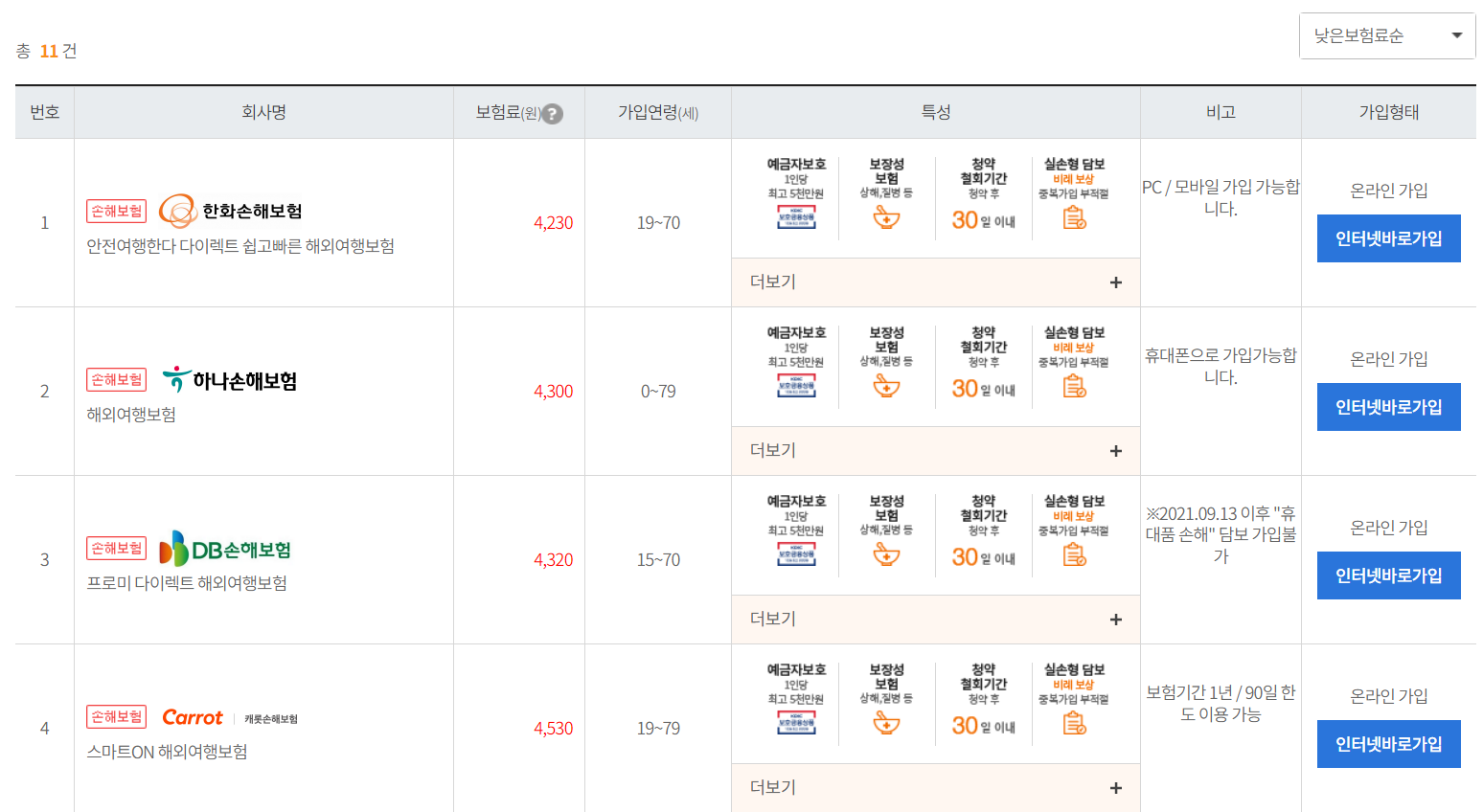 그냥 해외 여행자보험을 검색하니 아래링크처럼 보험을 비교해주는 웹사이트들이 잘 나와있기 때문이죠...