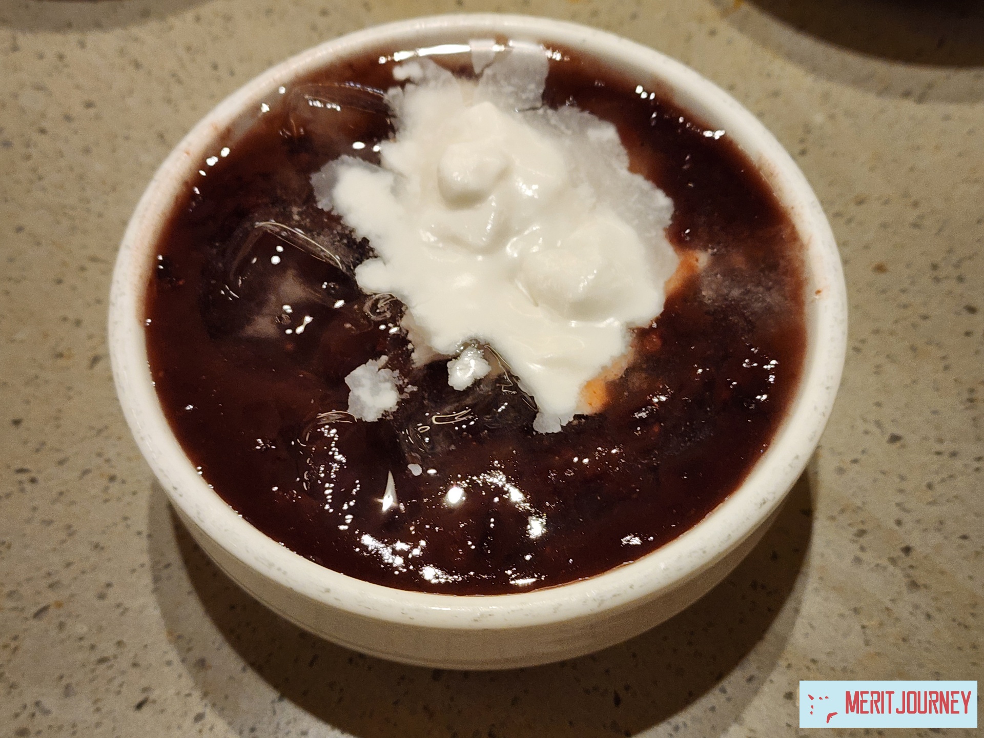 그리고 이날은 지인이 셀프바에 있는 팥죽 맛있게 먹는 방법이라면서 코코넛 밀크를 가져왔는데요,