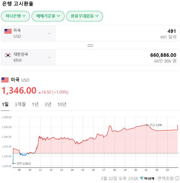 2024년 3월 22일 기준 환율로 491달러는 66만원이네요.