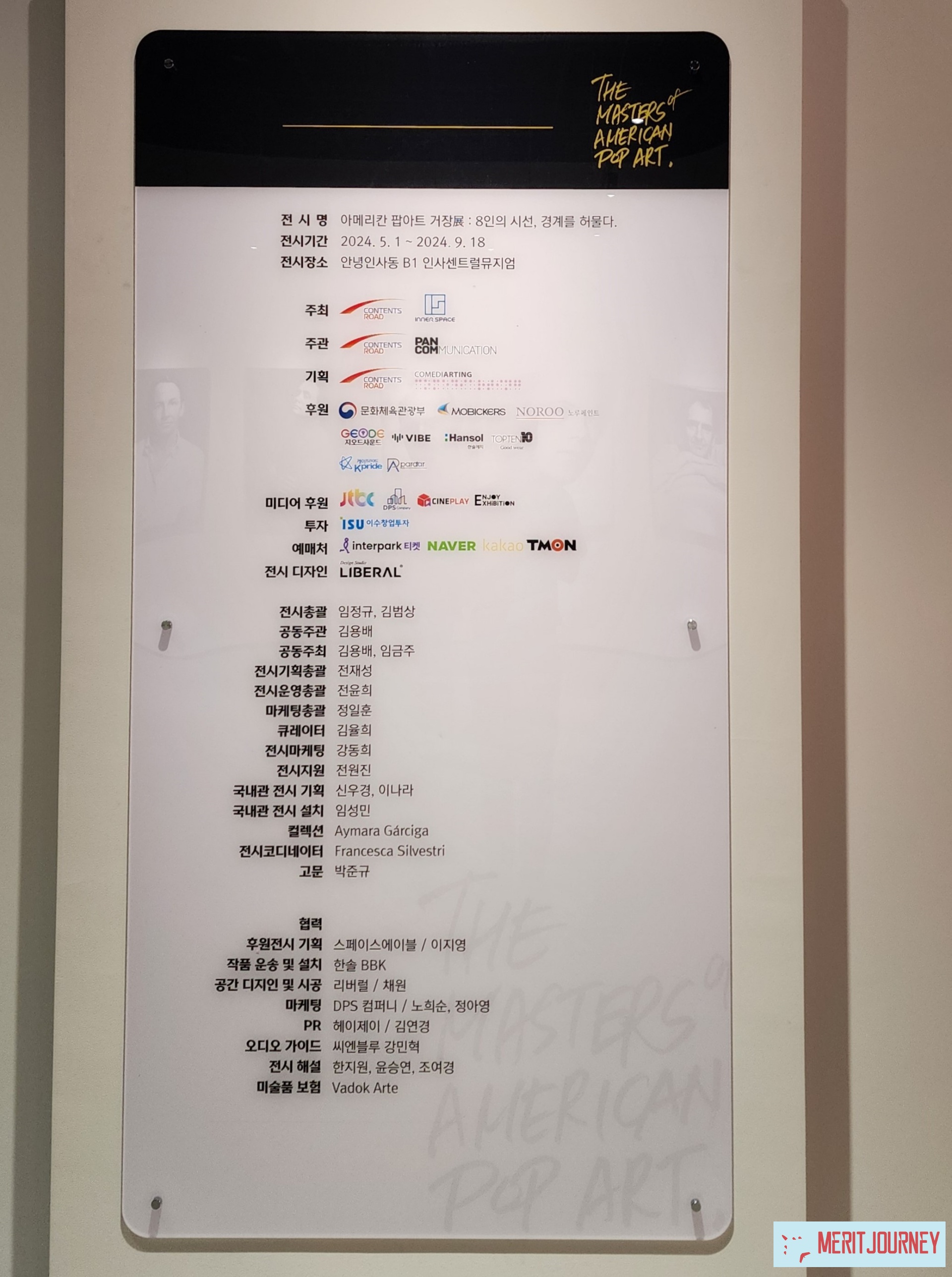 아메리칸 팝아트 거장전 전시회에는 거장들을 모신만큼 여러 후원을 받은 것 같습니다.