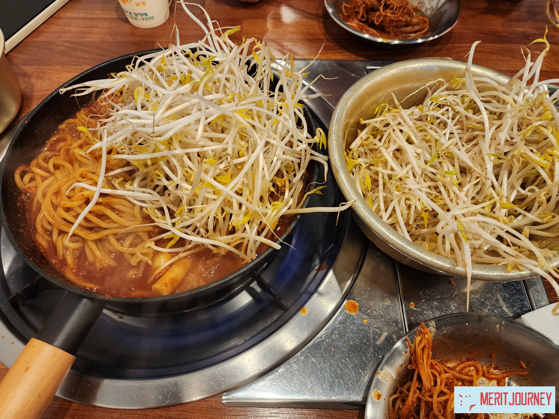 어느정도 끓은 뒤 숙주와 함께 먹으면