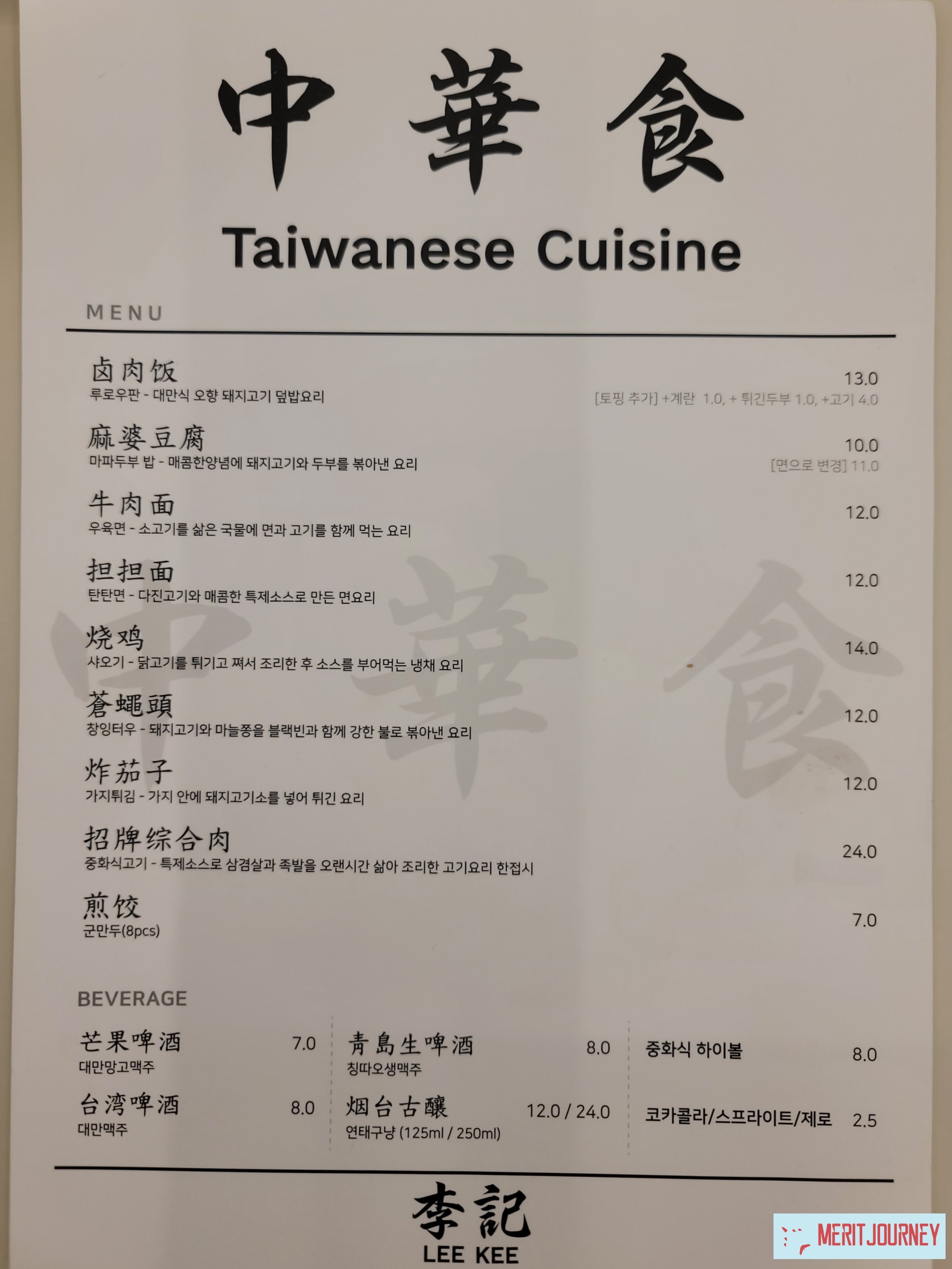 메뉴도 중국어가 메인이고 한국어가 설명하는 느낌입니다.