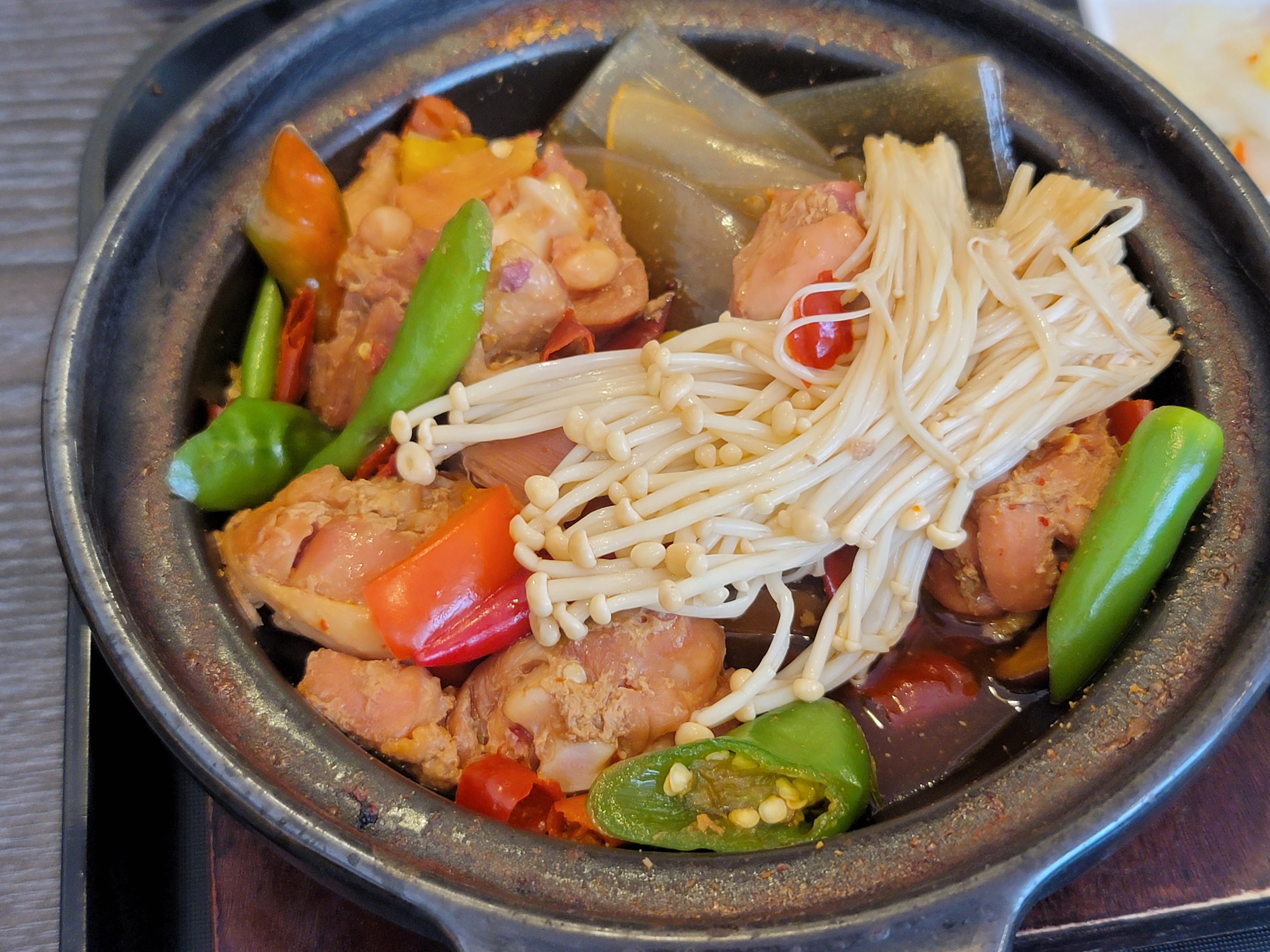 황먼지 미판의 중국식 찜닭의 맛은 한국의 맛과 약간 달랐습니다.
