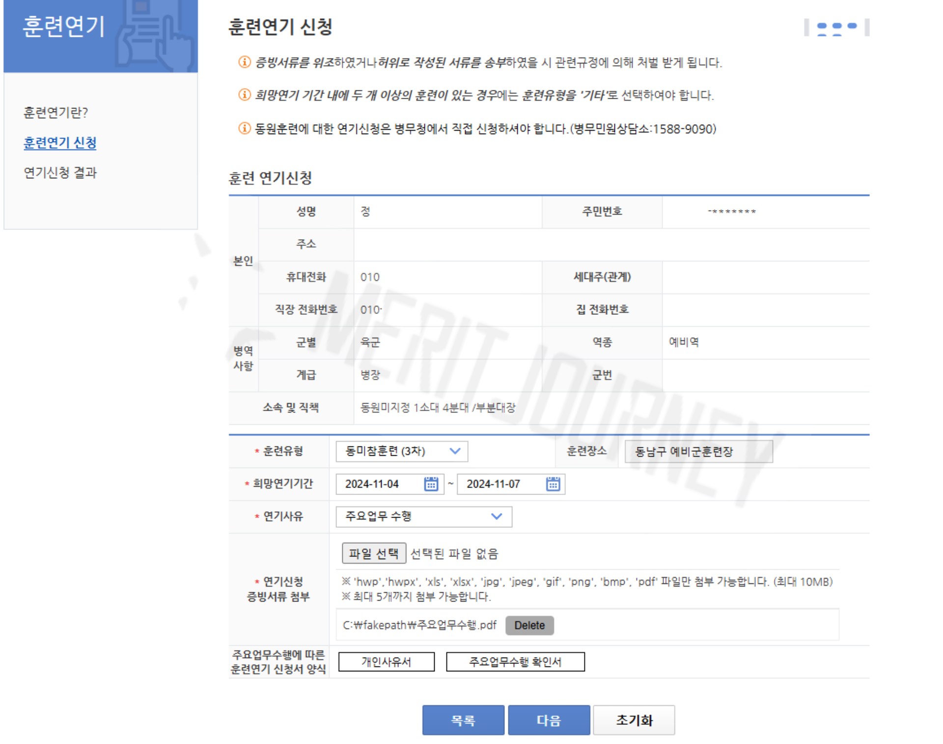 주요업무로 예비군 훈련 연기하는 방법