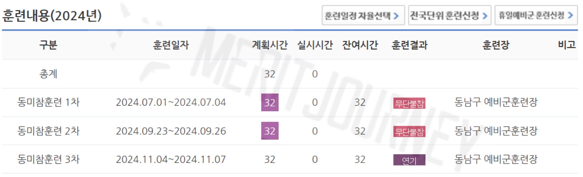 | 예비군 동미참훈련 1차 32시간 연기신청 사유, 방법, 결과 | HRD-Net 온라인 교육 (7) | 2024.06.05 |