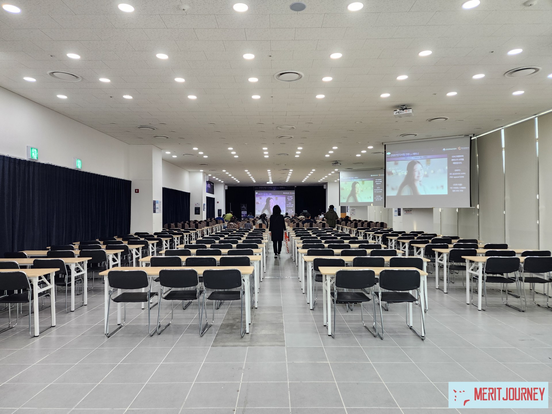 굿모닝시티 쇼핑몰에 이런 공간이 있을거라곤 생각도 못했는데, 이렇게 넓은 교육공간이 있었네요! 옆으로 좀만 더 가면 메가박스다 보니 더더욱 이런 교육장이 있을거라곤 상상도 못했었습니다. 뒷쪽에 앉으시는 분들을 위해서 스크린도 여러개 있어 좋았네요.