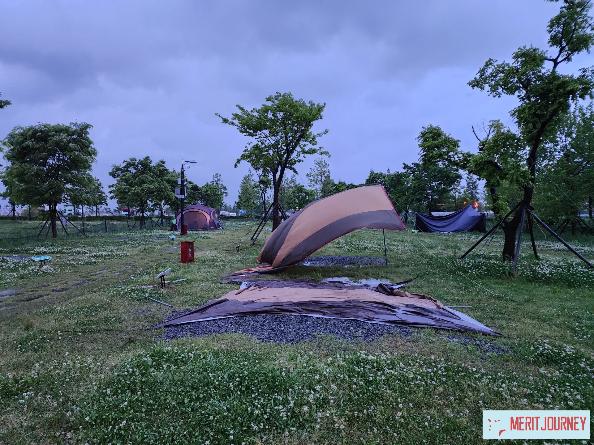 처음으로 가족들끼리 캠핑장에서 하룻밤 묵을 계획을 했는데, 갑자기 비바람이 몰아치면서 너무 춥고 찝찝한 상황이 되어버렸었네요. 그래서 캠핑 전문가인 형과 형수님만 남고 저희는 철수를 했었습니다. 근데 저희가 도착하고 30분이 채 되지 않아 형내외가 돌아오더라고요. 물어보니 "텐트가 찢어지고 뒤집어져 더 이상 할 수 없는 상황에 놓였다."라더군요.