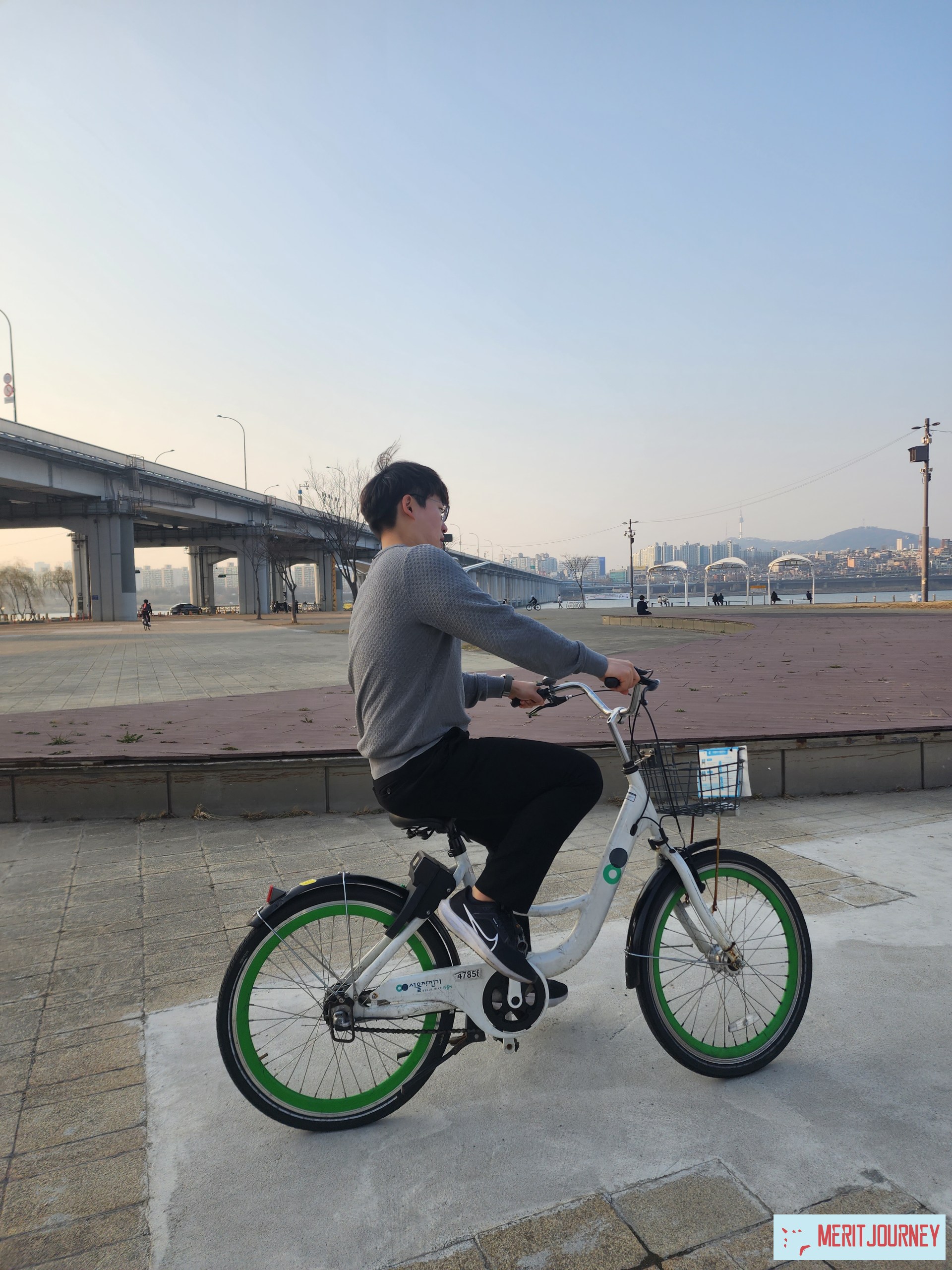 하지만 성인이 되고 보니 자전거를 못 탄다는 게 엄청난 아쉬움으로 다가오더라고요. 그래서 한강공원에 가서 한 시간 동안 열심히 노력한 끝에 자전거 걸음마를 뗄 수 있었습니다.