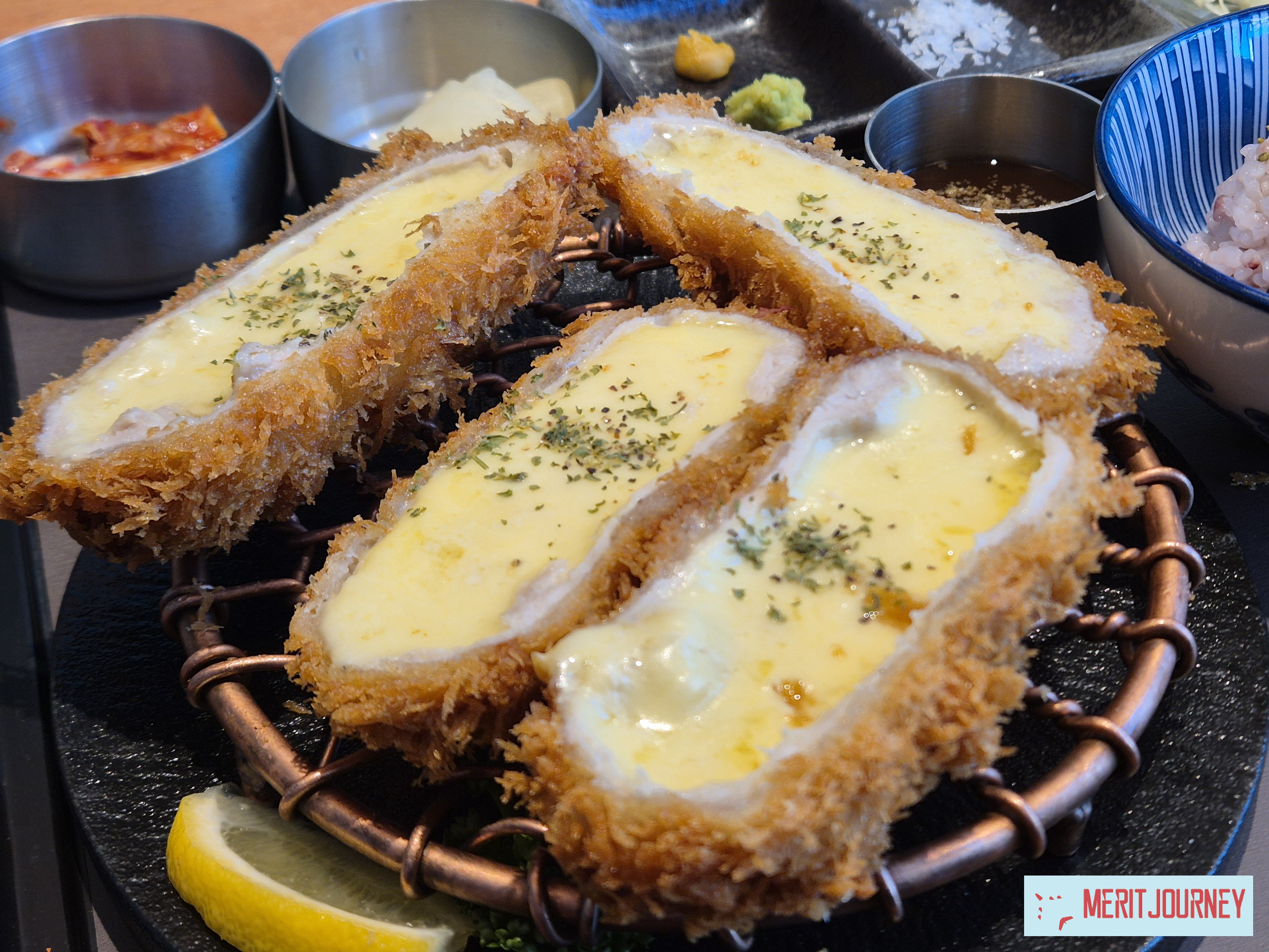 두툼한 돈카츠 위에 스모크 치즈가 듬뿍 녹아 있는 모습!